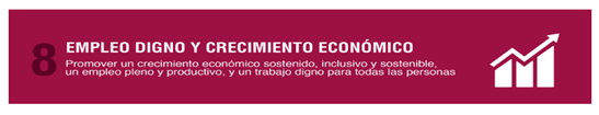 Se aboga por promover el crecimiento económico sostenido, inclusivo y sostenible, el empleo pleno y productivo y el trabajo decente para todos. La mejora de la empleabilidad se relaciona con tener la tasa de paro controlada y baja, y lograr que los salarios medios y las condiciones laborales sean, no solo dignas, sino que garanticen la cobertura de necesidades de las personas.